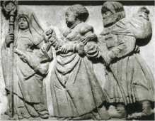 Auch vor den Frauen wird nicht halt gemacht. Die fromme Äbtissin, die Fürstin Barbara und die Bäuerin mit der Gänsekiepe müssen sich fügen. Der Gevatter duldet keinen Widerspruch. Schroff faucht er durch die Zahnlücken: