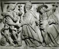 Und so folgen ihm zunächst die kirchlichen Vertreter: Papst und Kardinal, Bischof und Domherr, Abt, Priester und Mönch.
